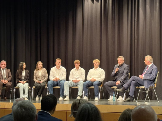 Besonders eindrucksvoll war die anschließende Diskussionsrunde mit Schülerinnen und Schülern des Gymnasiums Gosheim-Wehingen. Offen und engagiert sprachen sie über Themen, die junge Menschen heute besonders bewegen: Wehrpflicht, Rente, Führerscheinkosten und bezahlbarer Wohnraum.