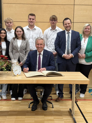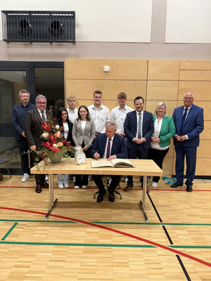 Der traditionelle Eintrag in das goldene Buch der Gemeinde Gosheim durfte nicht fehlen. Zudem wurde unserem Ehrengast Herrn Bundespräsident a.D. Christian Wulff eine Uhr der Firma Uhren Hermle als Präsent überreicht.